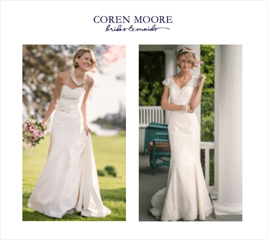 I intend to feature more Coren Moore dresses in upcoming styling sets like I did in this Nautical Wedding feature for Bayside Bride. But for now, take a look at some of my favorite Coren Moore styles, or pick out your own. To see how amazing these dresses look on real ladies, view the Real Weddings section to see how gorgeous these dresses are on ladies of every kind.
